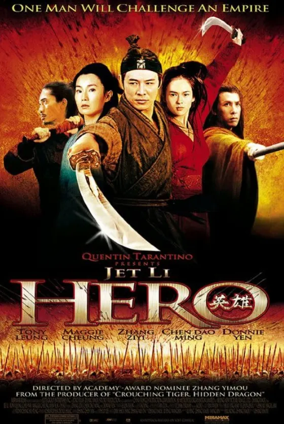 📖Plot Summary: During China‘s Warring States period, a nameless prefect (Jet Li) claims to have slain three legendary assassins who threatened the King of Qin. Granted an audience to tell his story, what unfolds is a complex meditation on truth, memory, sacrifice, and the meaning of “heroism” itself. Each retelling reveals something new about the characters and their impossible choices.