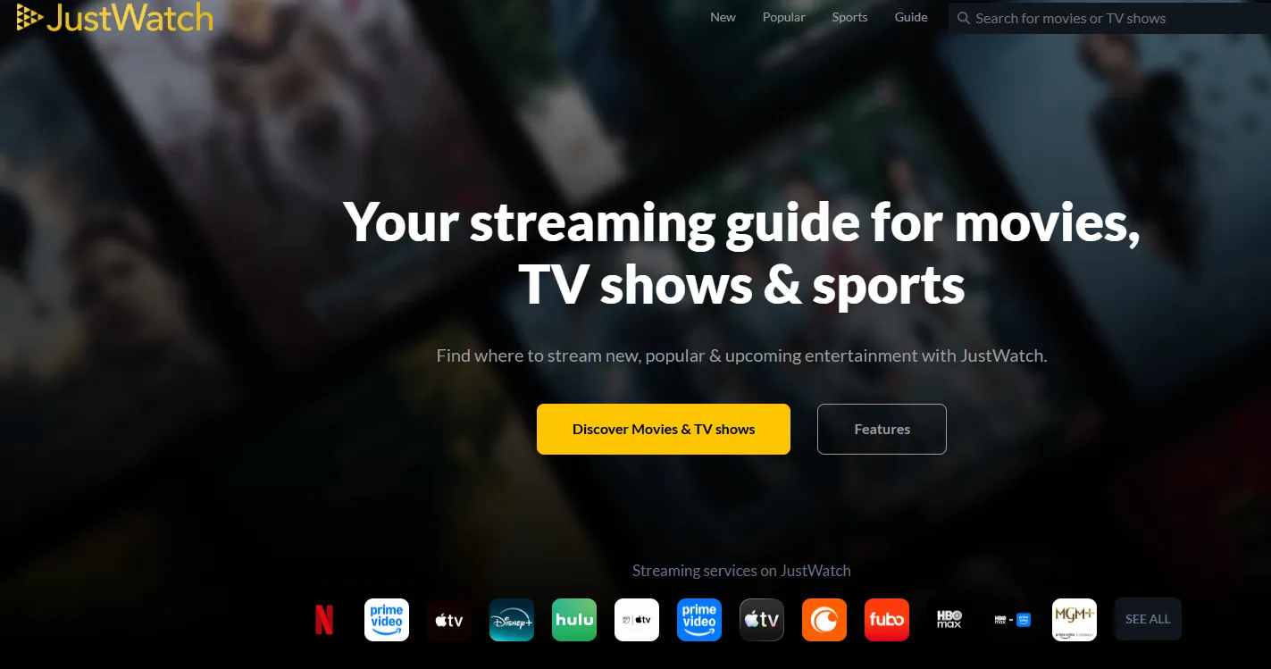 1.JustWatch - Best Overall for Finding 4K/HDR Streaming