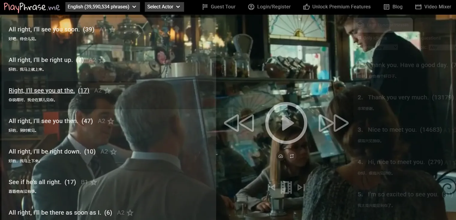 | PlayPhrase.me | Movie quotes & dialogue | Text quote | Watch clips of exact dialogue | Web,Android |