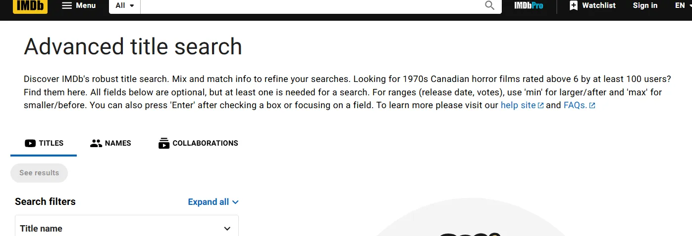 If you have multiple plot points: Select "Advanced Title Search" and combine filters like Year, Genre, and Keywords.