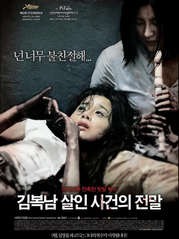 Bedevilled (2010) is a South Korean horror-thriller and social commentary film that culminates in a brutal, blood-soaked tale of revenge. The story focuses on two women: Hae-won, a cold city dweller, and Bok-nam, her childhood friend trapped in a cycle of abuse on a remote island.