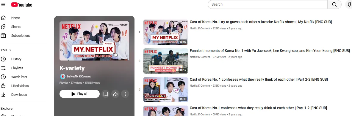 • Vast and Free Content: A massive amount of K-variety content is available for free, including clips, highlights, and full episodes, often uploaded by official channels or enthusiastic fans.